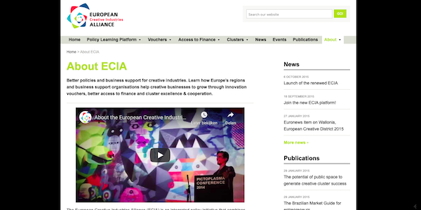 Voor dit Europese samenwerkingsproject tussen 12 landen en 28 partners verzorgde ik zelfstandig de online communicatietaken, in overleg met projectpartners in o.a. Barcelona. De European Creative Industries Alliance werkte aan beter beleid om de creatieve industrie te ondersteunen. Beleidsmakers en andere betrokkenen zorgen zo dat startups in de creatieve industrie betere toegang hebben tot services en financiering om hun bedrijf te ontwikkelen. Ik creëerde in samenwerking met de partners Engelstalige content voor op de website en Twitterfeed, en verzond de maandelijkse nieuwsbrief. Daarnaast deed ik verslag en ondersteunde bij de slotconferentie van ECIA in november 2014 in Amsterdam.